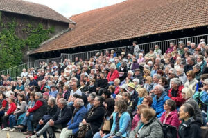 Dimanche après-midi, le public était si nombreux qu’il a fallu doubler la séance dans la cour de la ferme, véritable petit théâtre naturel, pour « Don Quichotte », le chef-d’oeuvre de Cervantes revisité et mis en scène par Carlo Boso. Un triomphe pour ces jeunes élèves de l’Ecole Supérieure Internationale des Arts Dramatiques de Versailles. L’originalité et l’audace de la mise en scène, la belle énergie des comédiens, tous les ingrédients pour une fresque déjantée, inspirée avec tout le talent du Maître Carlo Boso, d’un roman picaresque qui lui-même se voulait déjà une parodie des moeurs médiévales et une critique des structures sociales d’une société espagnole rigide et vécue comme absurde … Le public se laisse alors embarquer avec délectation …