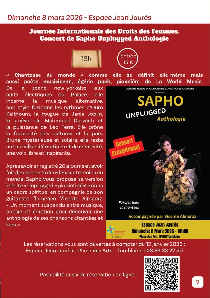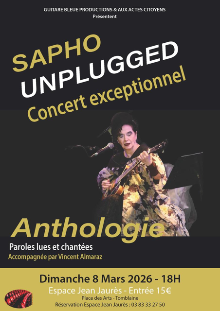 Le dimanche 8 mars, dans le cadre de la Journée Internationales des Droits des Femmes, l’association « Aux Actes Citoyens » a eu la belle idée d’inviter la chanteuse Sapho ! Ce concert intitulé « Unplugged Anthologie » est d’ores et déjà annoncé comme un véritable évènement !