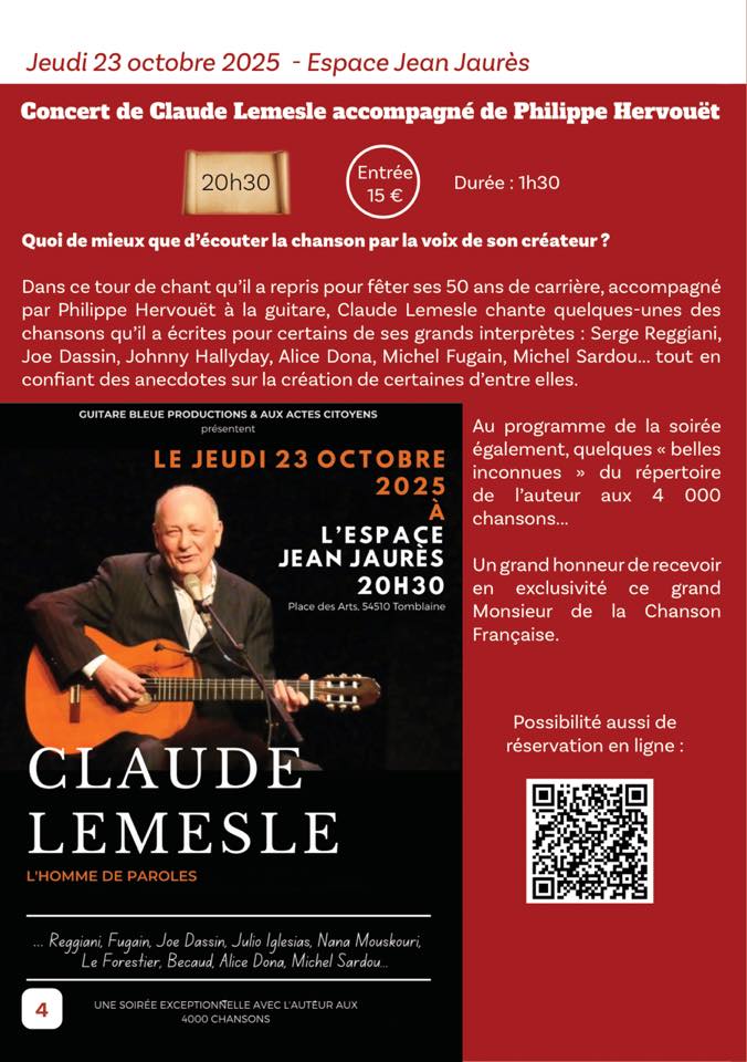 Réservations : Espace Jean Jaurès – Place des Arts – Tomblaine : 03 83 33 27 50.
